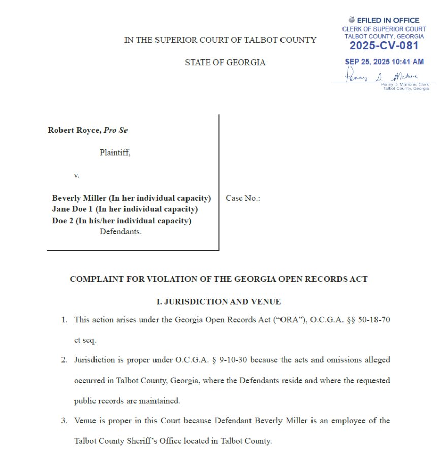Taken together, two lawsuits in two months paint a troubling picture: instead of following Georgia’s transparency laws, the Talbot County Sheriff’s Office seems more interested in stonewalling the public—and it may now have to answer those questions in court.